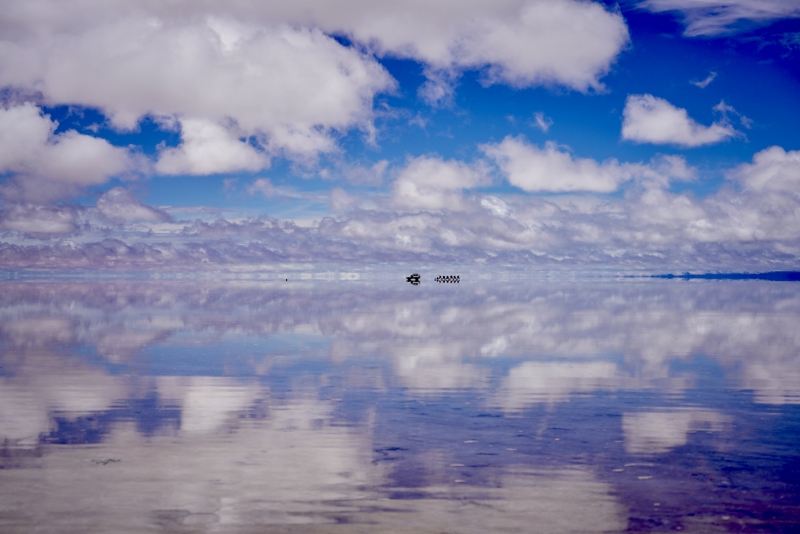 乌尤尼盐滩占地11000多平方公里,是世界上最大的盐湖。这片美丽的盐滩是在安第斯山脉抬升期间形成的,平均海拔3700米。它的盐储量估计为100亿吨。每年冬天,充满雨水的盐滩都会变成一个浅水湖,就像“天空之镜”。这幅壮丽的图像与真实的天空完全对称。这创造了一种奇异的无限幻觉,就像在另一个星球上一样。